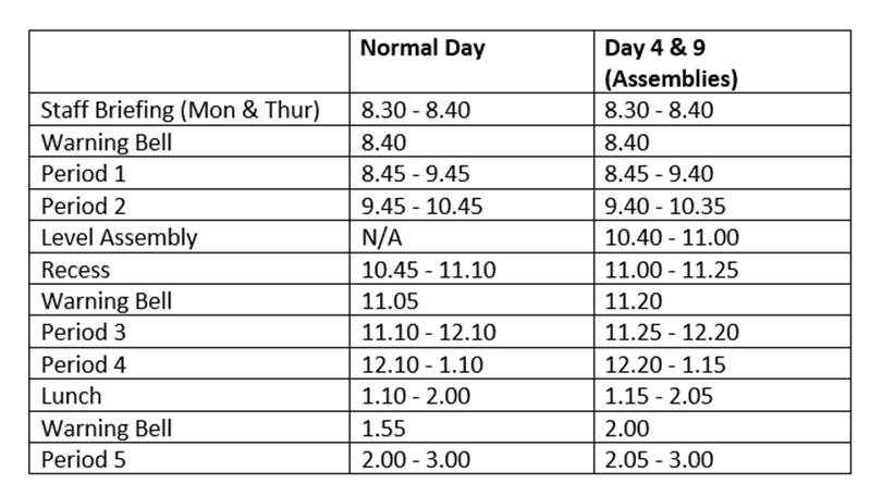 We ask for your support in ensuring that all students are arriving at school on time to ensure valuable class time is not lost. Students who arrive late to school must sign-in at the General Office and provide an explanation for their lateness.